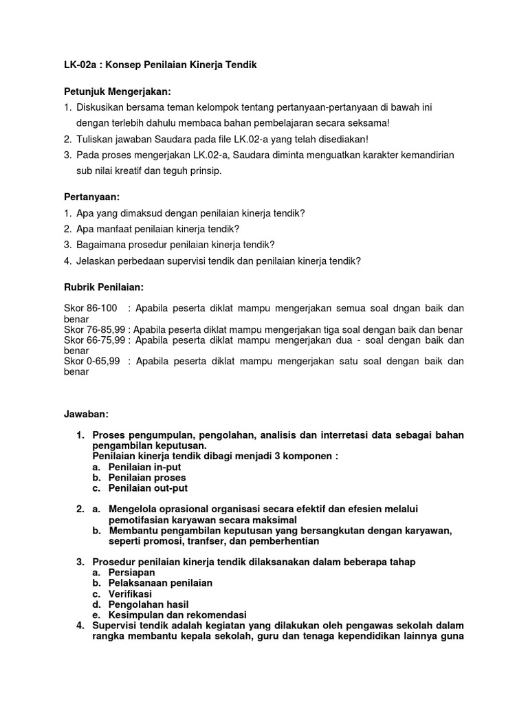 Pertanyaan dan jawaban seputar penilaian kinerja guru pkg dan penilaian prestasi kerja ppk dadang jsn / pertama, penilaian kinerja harus menyediakan berbagai tujuan, mulai dari penilaian keberhasilan pemilihan keputusan.